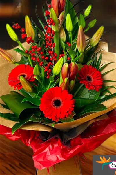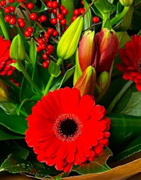A festive selection including the gorgeous Amaryllis, lilies and berries.