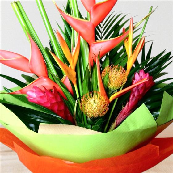 An impressive bouquet for a special gift. With a stunning mix of all our best exotics. This is a really special display of vibrant colours and flowers. Order yours now.